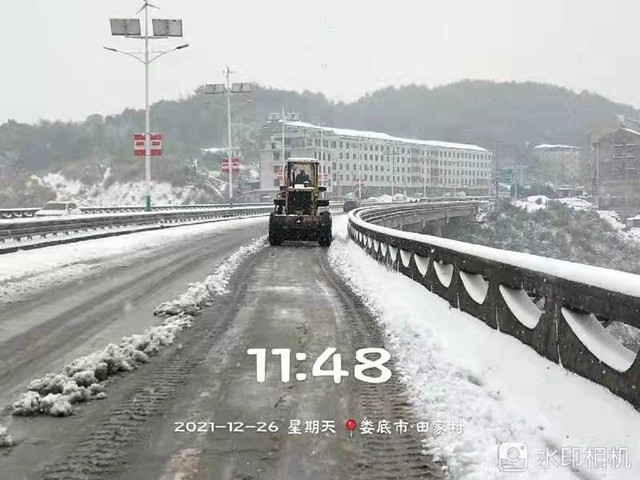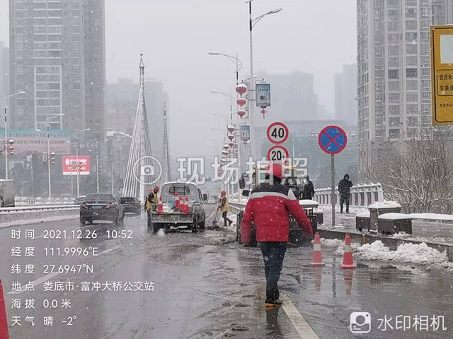 婁雙公路通行正常,未出交通事故,市政維護(hù)處正在鏟雪,準(zhǔn)備撒鹽,確保橋面不結(jié)冰