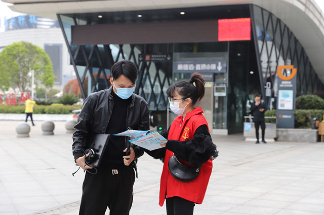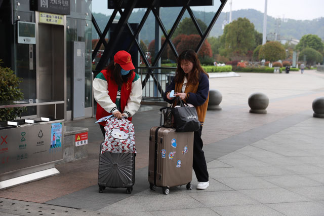 志愿者身穿紅馬甲,通過(guò)規(guī)范的手勢(shì)、禮貌的語(yǔ)言,主動(dòng)為旅客搬運(yùn)行李,宣傳疫情防控知識(shí),幫助旅客購(gòu)票退票,引導(dǎo)旅客文明出行,用實(shí)際行動(dòng)詮釋志愿服務(wù)精神,成為高鐵南站一道靚麗的風(fēng)景線。