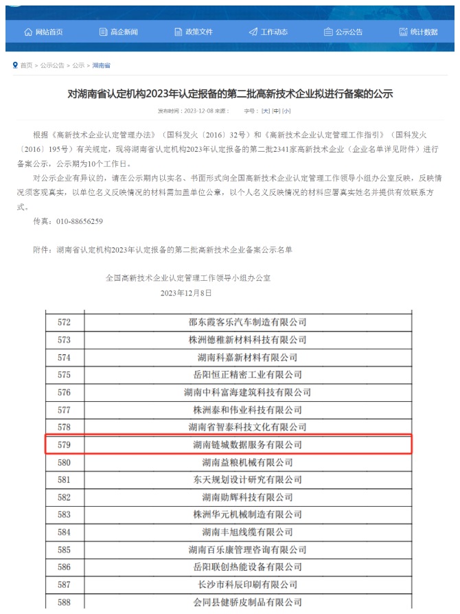 (子公司鏈城數據公司獲批國家級高新技術企業(yè))