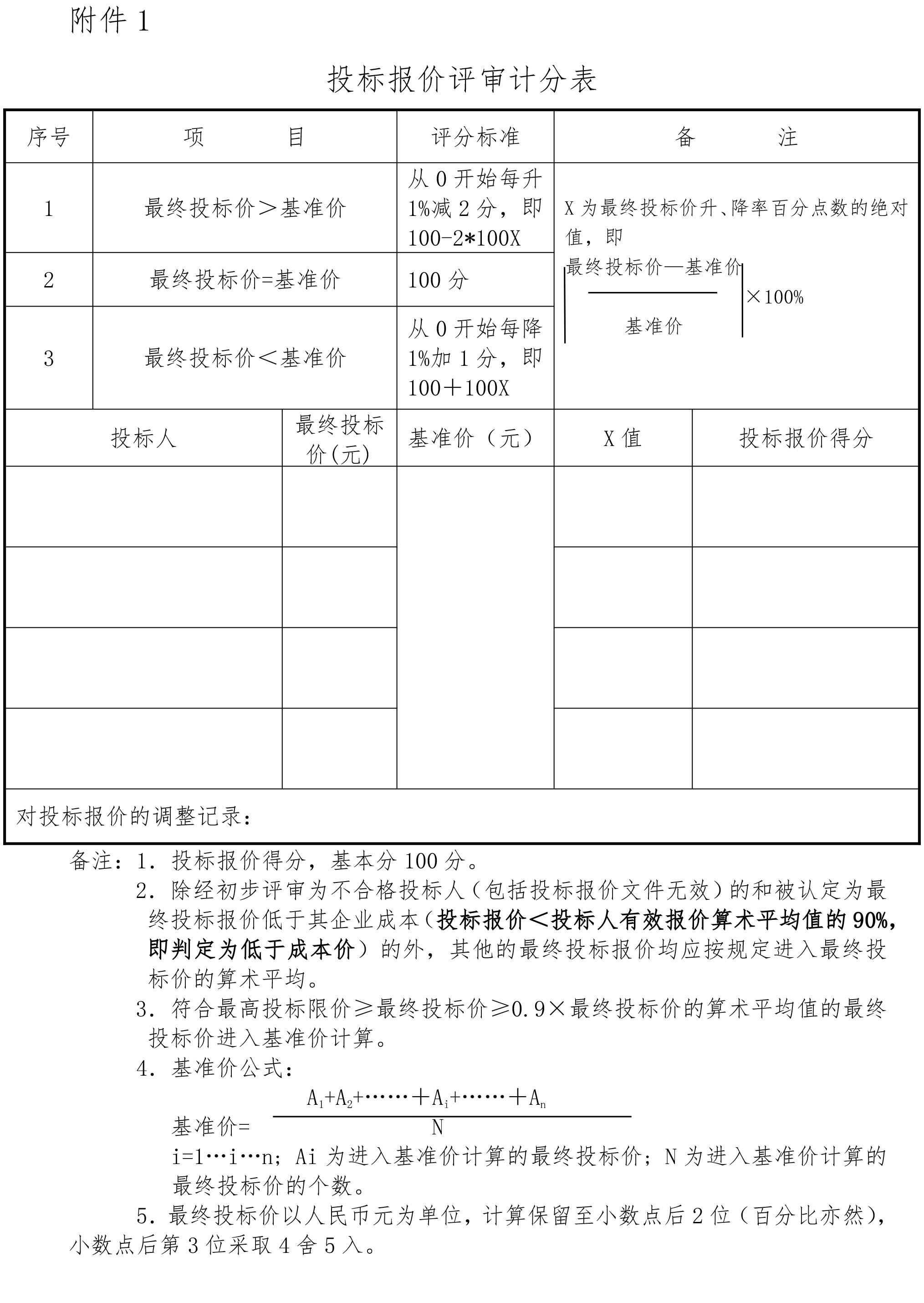 合理低價(jià)法。計(jì)分規(guī)則見附件1,得分最高的為中選單位。若最高得分有并列的兩家及以上單位,由評(píng)委會(huì)抽簽確定中選單位。